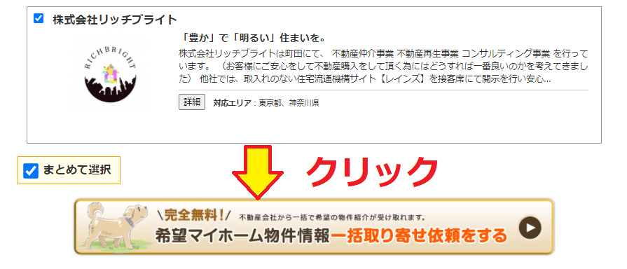 ●5 資料を取り寄せる不動産屋を選択して依頼するをクリックします