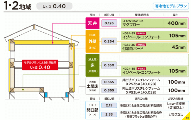 ZEH基準でUA基準値 UA=≦0.40の場合