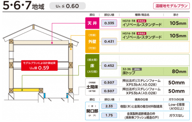 ZEH基準でUA基準値 UA=≦0.60の場合