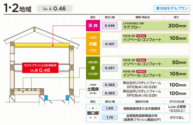 省エネ基準でUA基準値 UA=≦0.46の場合